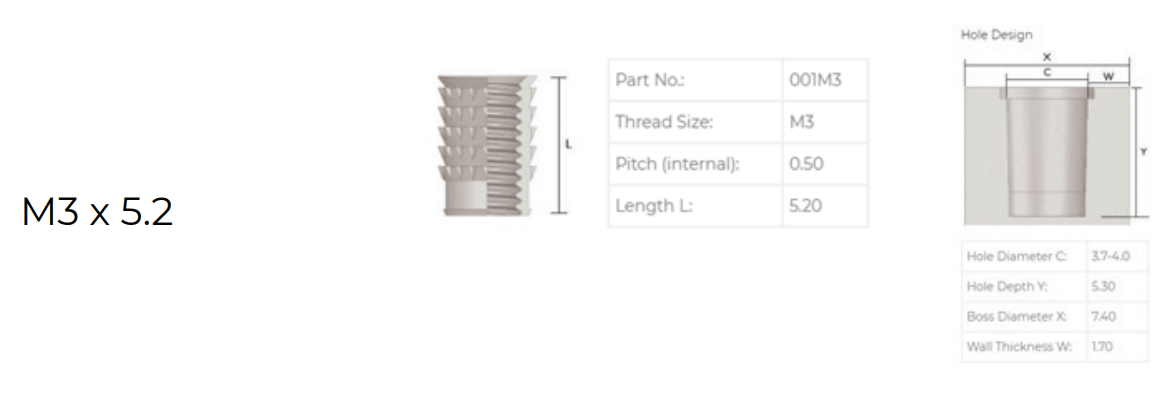 Pack 5 unidades Porca Inserção M3 para embutir em plástico ( Thread inserts ) – Bondtech