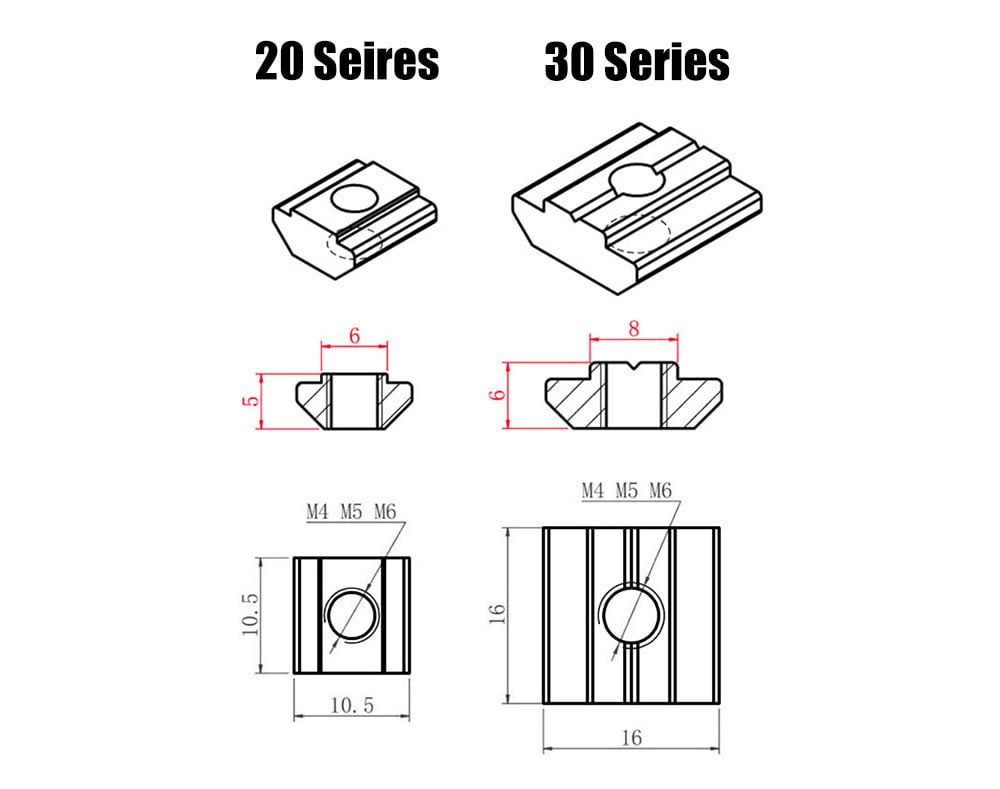 Porca Roscada em T ( T-Nut ) com furação rosca M5 para perfil 2020.