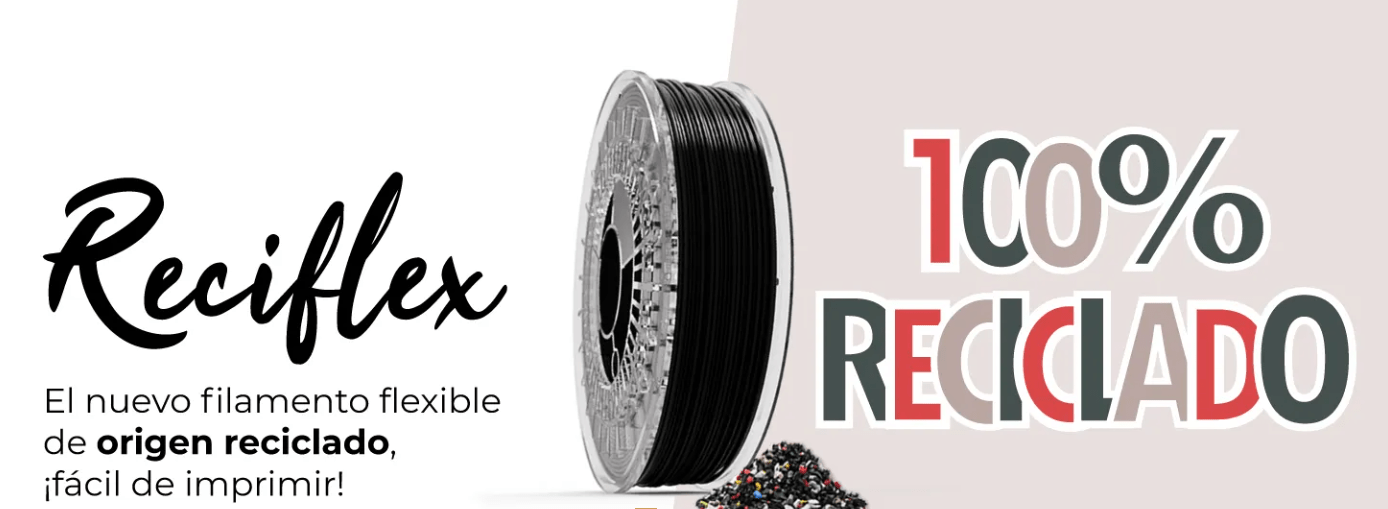 Reciflex é o novo filamento TPU flexível, 100% de origem reciclada, tanto de resíduos da indústria do calçado como da produção interna da Recreus.