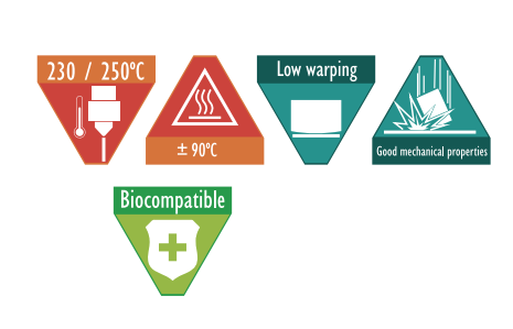 Este filamento tem certificação USP classe VI ou ISO 10993-1. Esta certificação garante a biocompatibilidade do filamento com o corpo humano para peças de uso tópico que possam entrar em contato com ele.