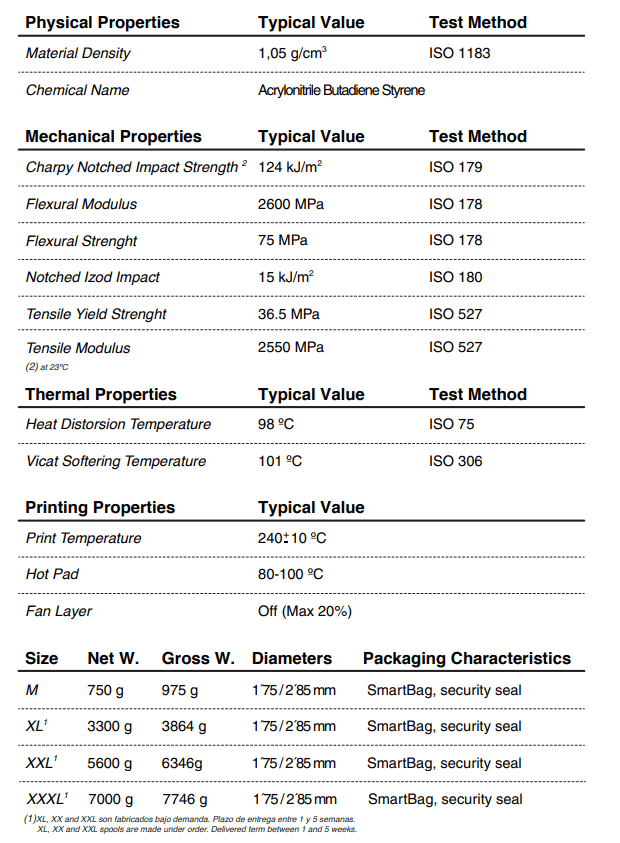 SMARTFIL ABS, é um filamento ABS especialmente aditivado para poder reduzir a temperatura da cama aquecida a 60ºC minimizando a deformação e o surgimento de rachaduras.