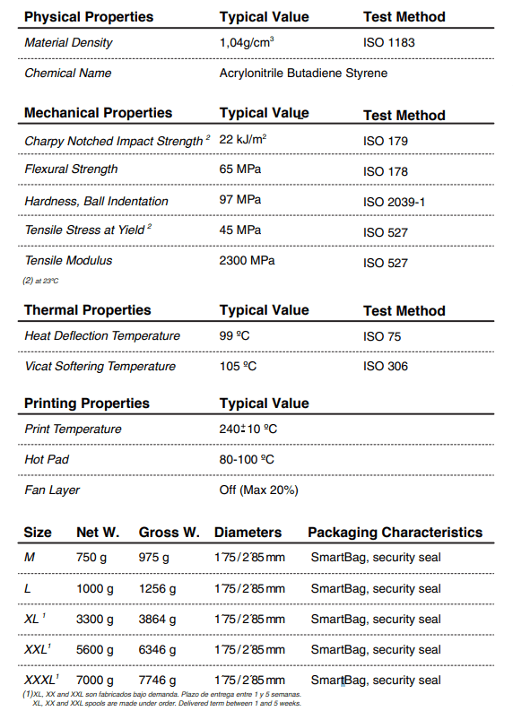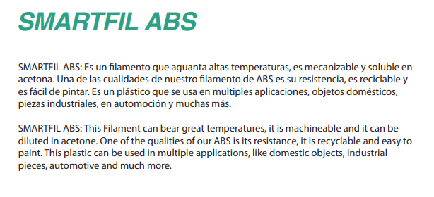 SMARTFIL ABS, é um filamento ABS especialmente aditivado para poder reduzir a temperatura da cama aquecida a 60ºC minimizando a deformação e o surgimento de rachaduras.