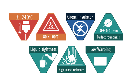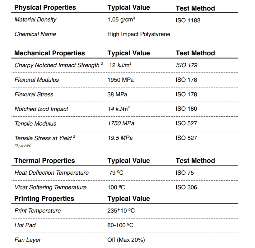 O filamento HIPS é uma base em ambos os significados desta palavra: as suas propriedades permitem que seja usado como um filamento básico e também como suporte para outros materiais.
