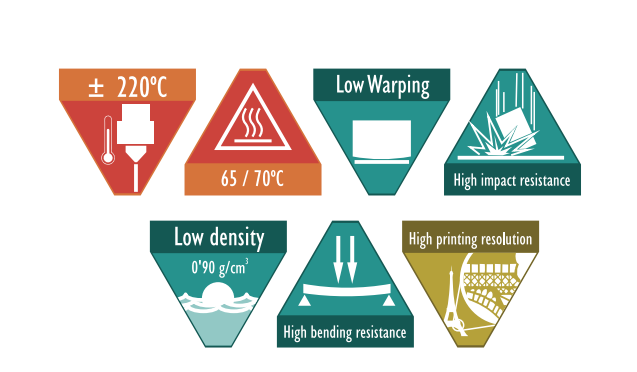 O PP pode ser impressa com quase qualquer impressora 3D sem a necessidade de uma câmara fechada.