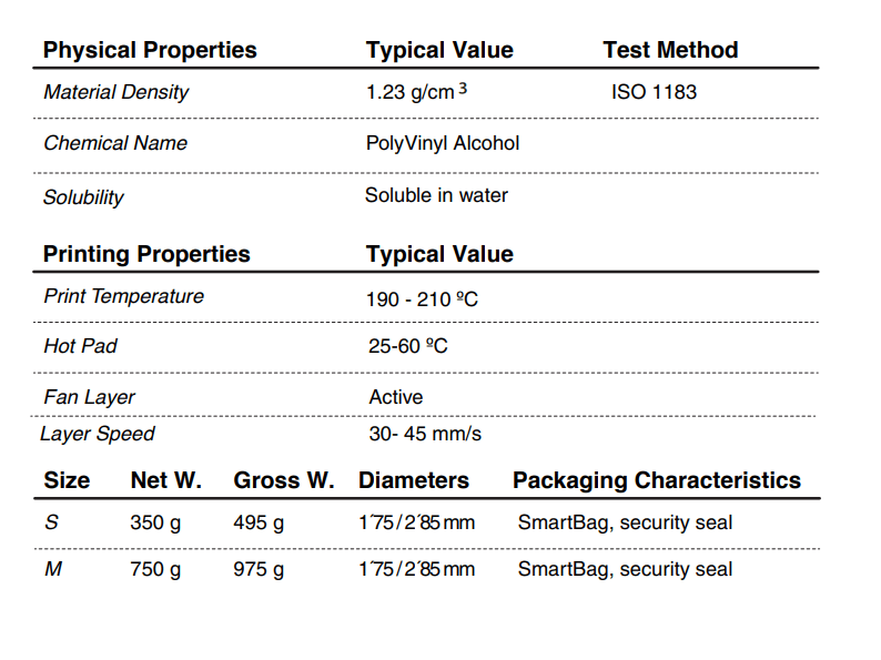 | Etiquetas: | 330, 330g, 3d, agua, alcohol, bege, branco, claro, contacto, dissolvivel, filamento, natural, polyvinyl, smart materials 3d, Smartfil, SMARTFIL PVA, smartmaterials3d, soluvel, suporte, support, water, Water washable, water-soluble, white |