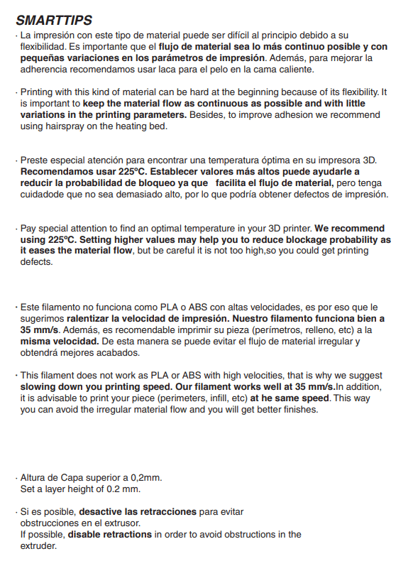 Este é um filamento fabricado em Espanha, segundo as mais rigorosas normas de qualidade.