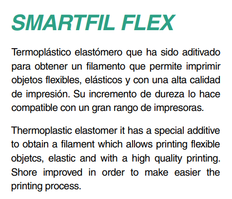 Filamento TPU Smartfil Flex da marca Smart Materials 3D, de excelente qualidade, para a Impressão 3D. Indicado tanto para utilizadores mais avançados e profissionais como para quem está a começar.