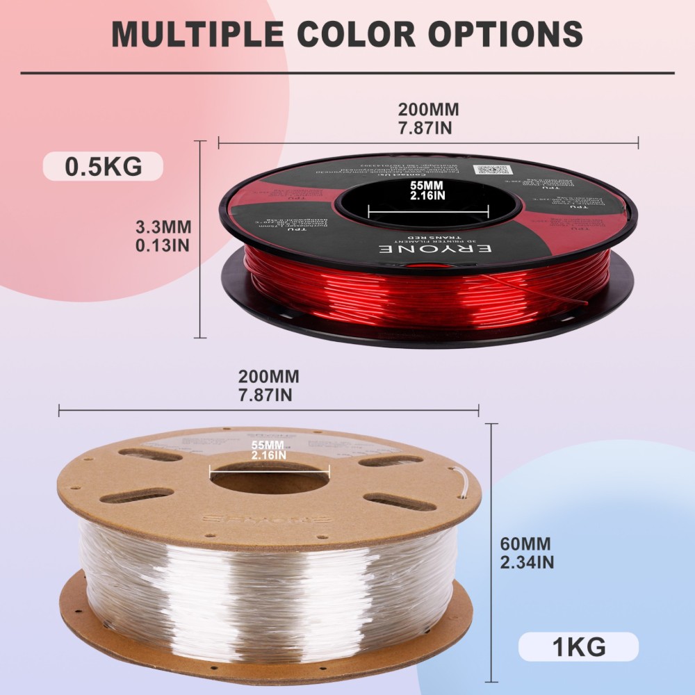 O nosso filamento flexível ERYONE TPU é um filamento à base de poliuretano termoplástico (TPU).