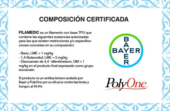O FilaMedic® da marca espanhola TECNIKOA, é um filamento Anti Bacteriano, flexível baseado em TPU, sendo um material com uma sensação agradável ao toque, com excelentes propriedades físicas e mecânicas e um alto grau de elasticidade.