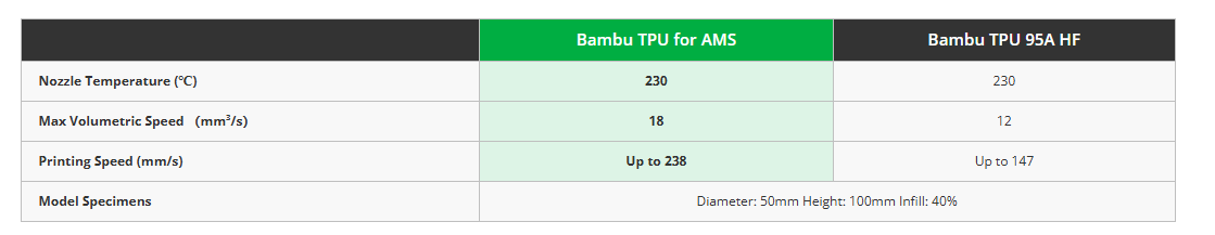 O Bambu TPU para AMS oferece velocidades de impressão até 60% mais rápidas em comparação com o Bambu TPU 95A HF, aumentando a eficiência sem comprometer a qualidade. Faça mais em menos tempo com resultados rápidos e fiáveis!
